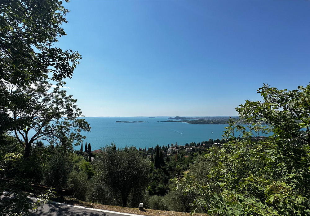 Wir sind am Donnerstagabend angereist und haben den Abend entspannt bei einem Glas Aperol ausklingen lassen. Am nächsten Morgen haben wir uns mit Müsli und frischen Früchten reichlich gestärkt, bevor wir zu unserer ersten Tour aufbrachen, der sogenannten „Panoramatour“. Und das aus gutem Grund! Wir fuhren durch eine gigantische Zypressen-Allee, deren Spitzen teilweise an der 10 Meter Marke kratzten, hatten atemberaubende Ausblicke auf den Gardasee von verschiedenen Perspektiven und fuhren an etlichen Weingütern und Olivenhainen vorbei.